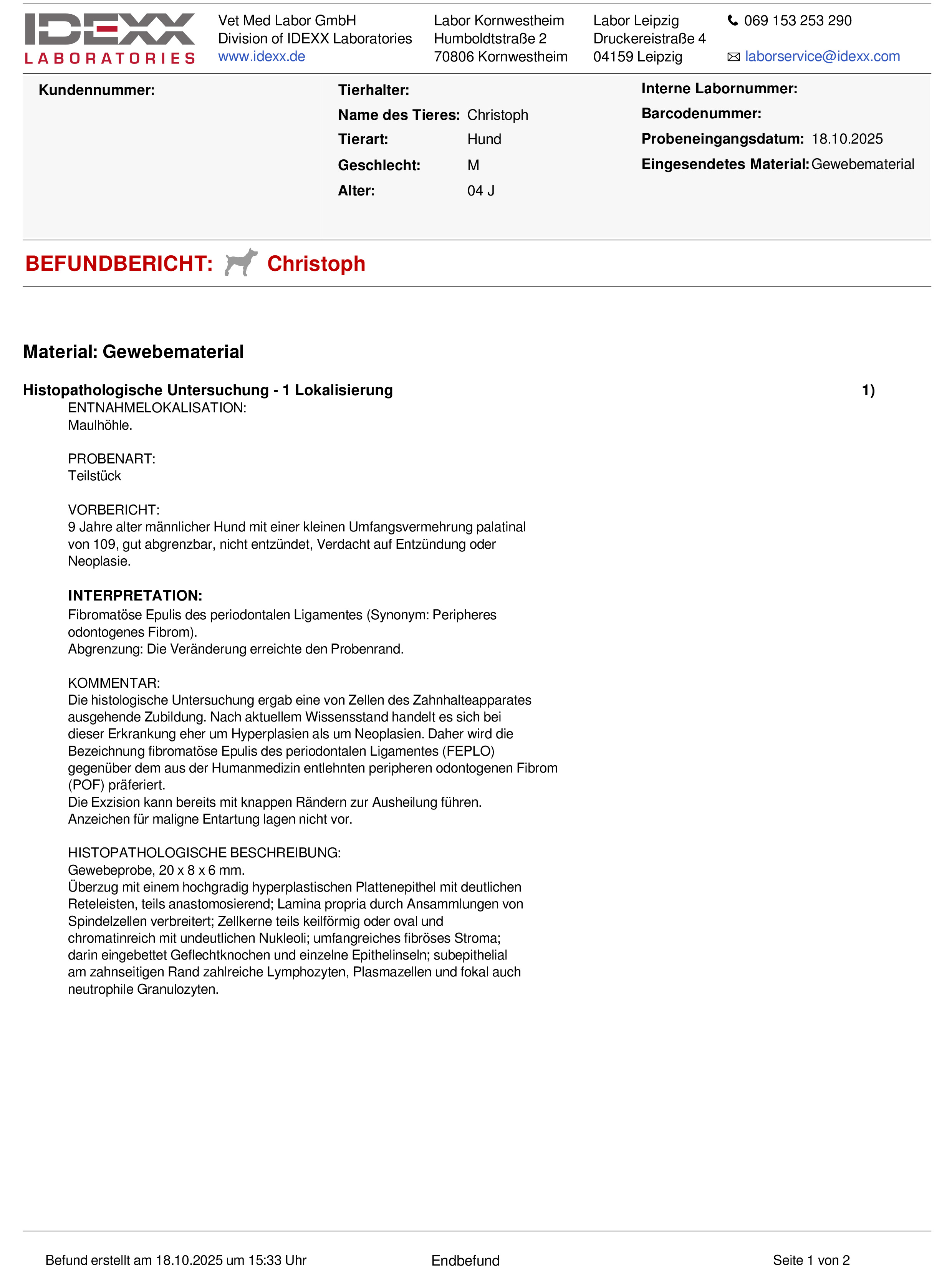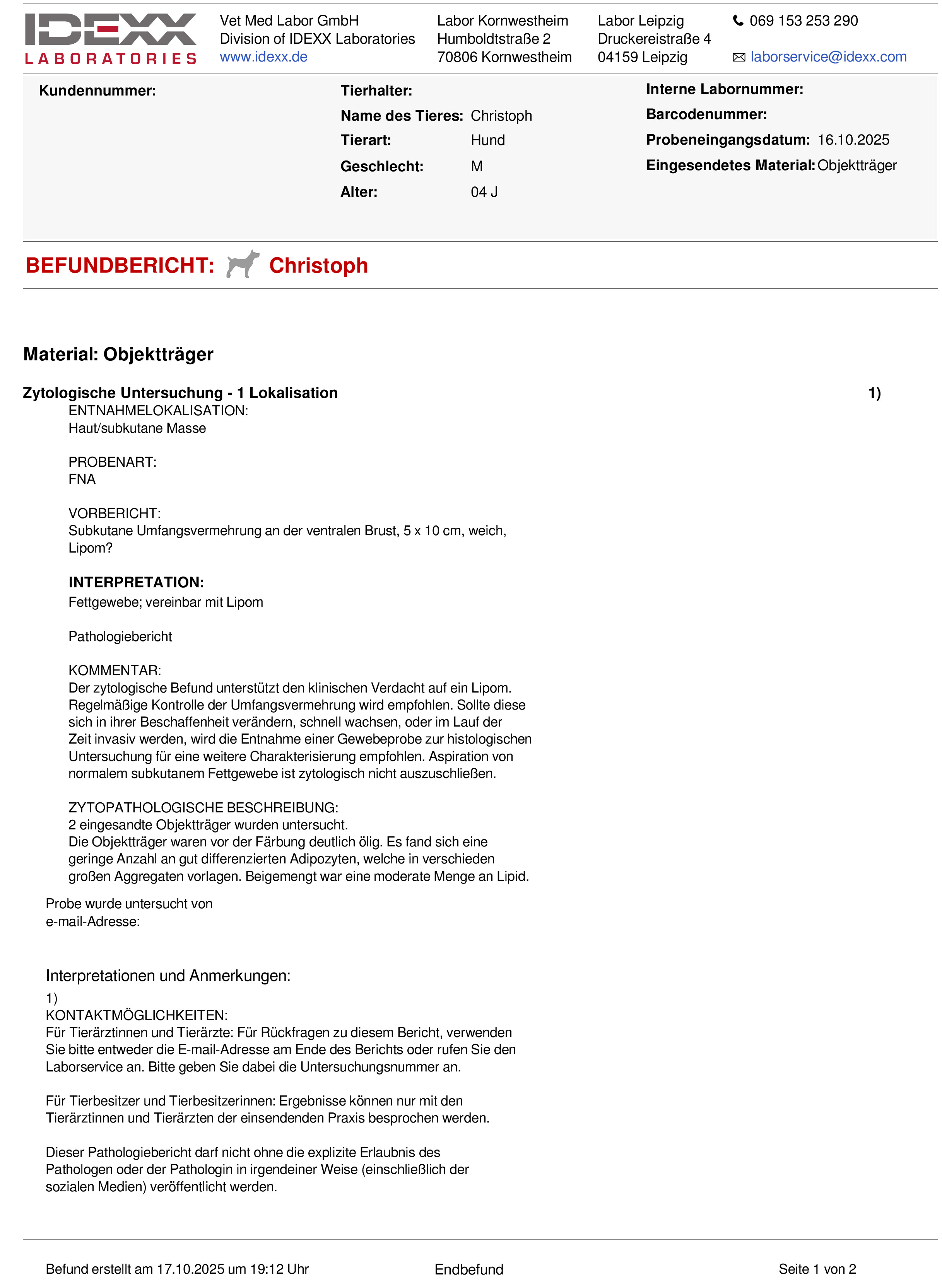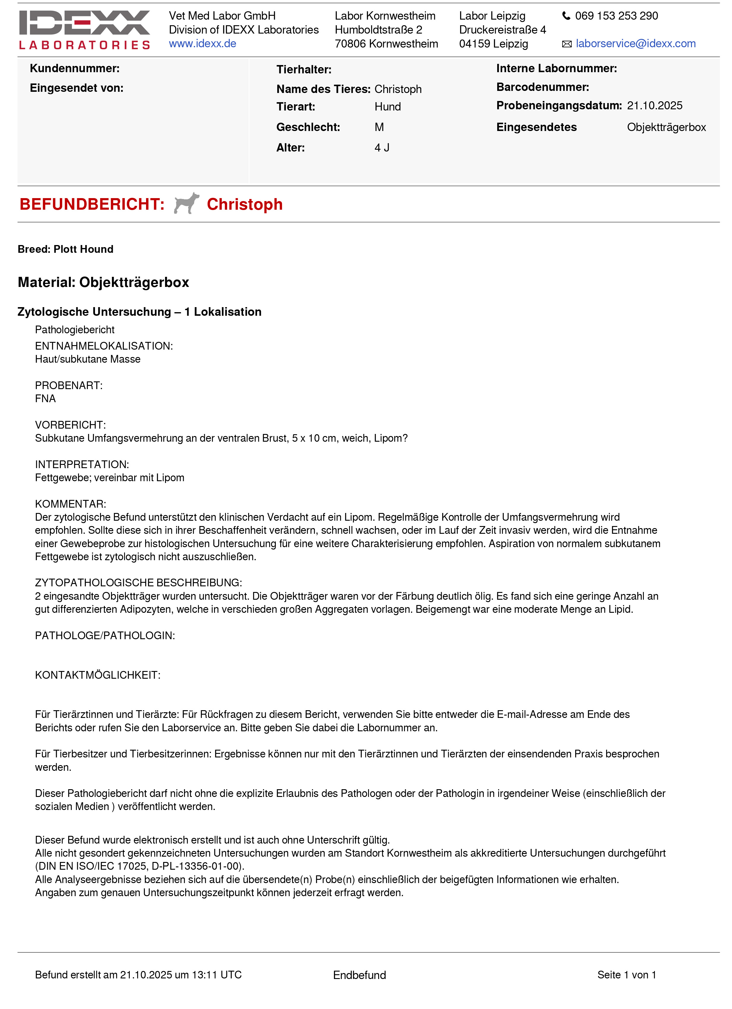- Ein nicht von IDEXX stammender Antragsschein ist im Labor eingegangen.